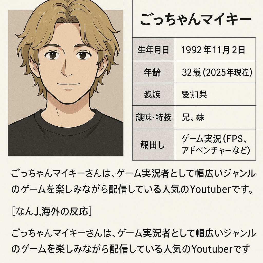 ごっちゃんマイキーの趣味や特技『2025年現在』。【なんJ,海外の反応】が賞賛を惜しまない理由は、彼がただ“上手い”からではない。彼は“本気で向き合っている”からだ。ゲームに、言葉に、視聴者に。そしてその本気は、何よりも“日常”に根ざしている。だから彼の実況は、いつも不思議と温かい。どれだけ激しい銃撃戦でも、どれだけ切ない物語でも、どれだけ広大な世界でも──そこには、必ず“ごっちゃんマイキー”が息づいている。